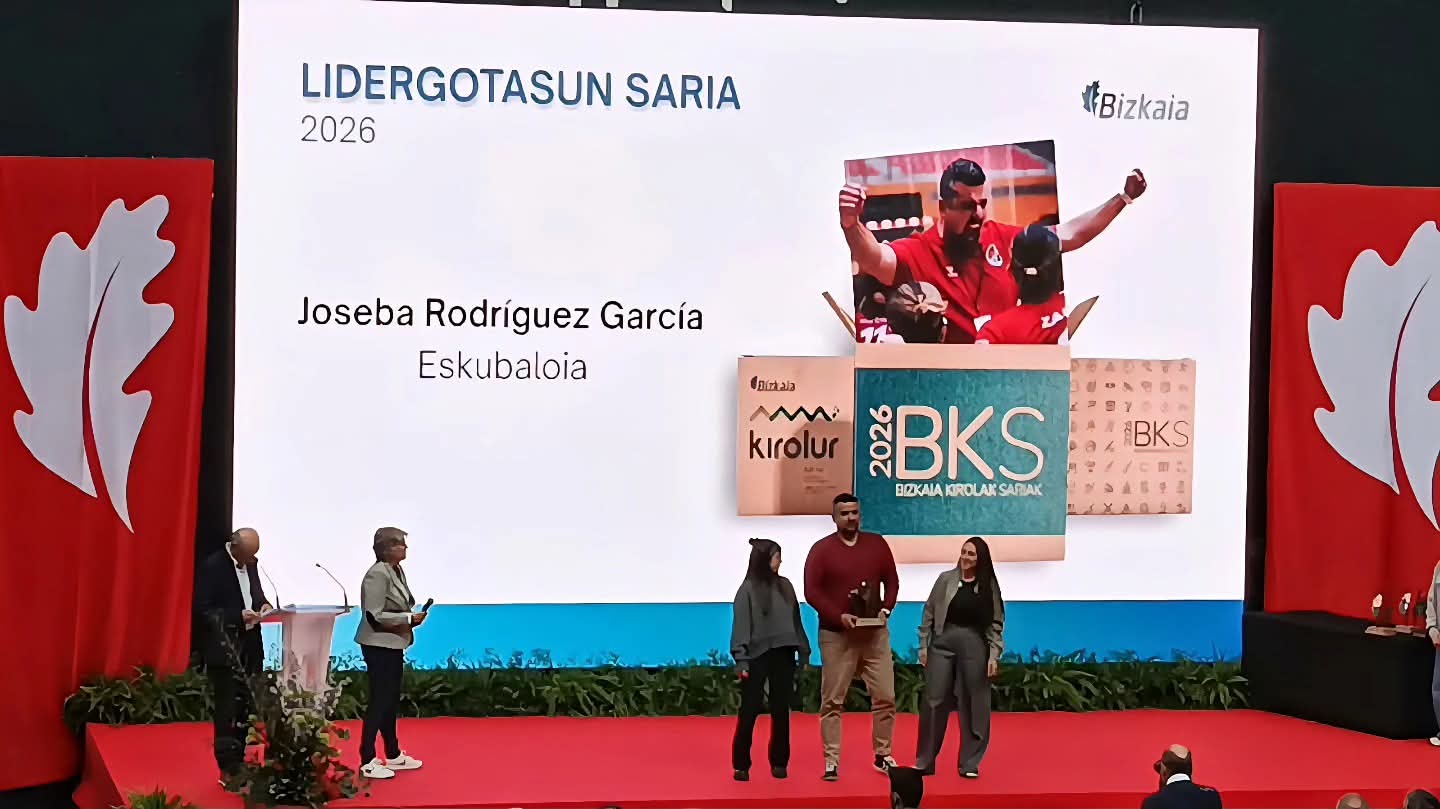 El deporte en Barakaldo volvió a destacar en una de las grandes citas del calendario vizcaíno. Joseba Rodríguez, entrenador del Club Balonmano Zuazo, recibió el Lidergotasun Saria durante la gala de los Bizkaia Kirolak Sariak 2026, celebrada en el Bizkaia Frontoia y organizada por la Diputación Foral de Bizkaia.
