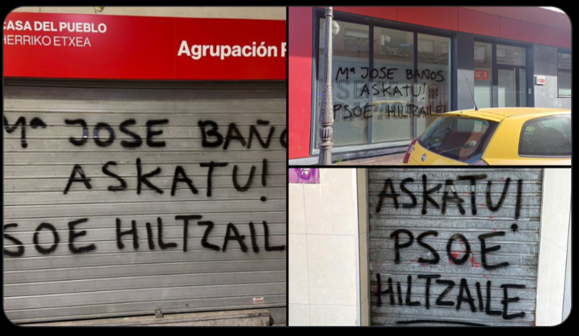 Además de Barakaldo, también aparecieron mensajes en las fachadas de las sedes socialistas de Txurdinaga, en Bilbao, y Trapagaran. Según explicó la formación, las pintadas incluían mensajes ofensivos y consignas de carácter político.